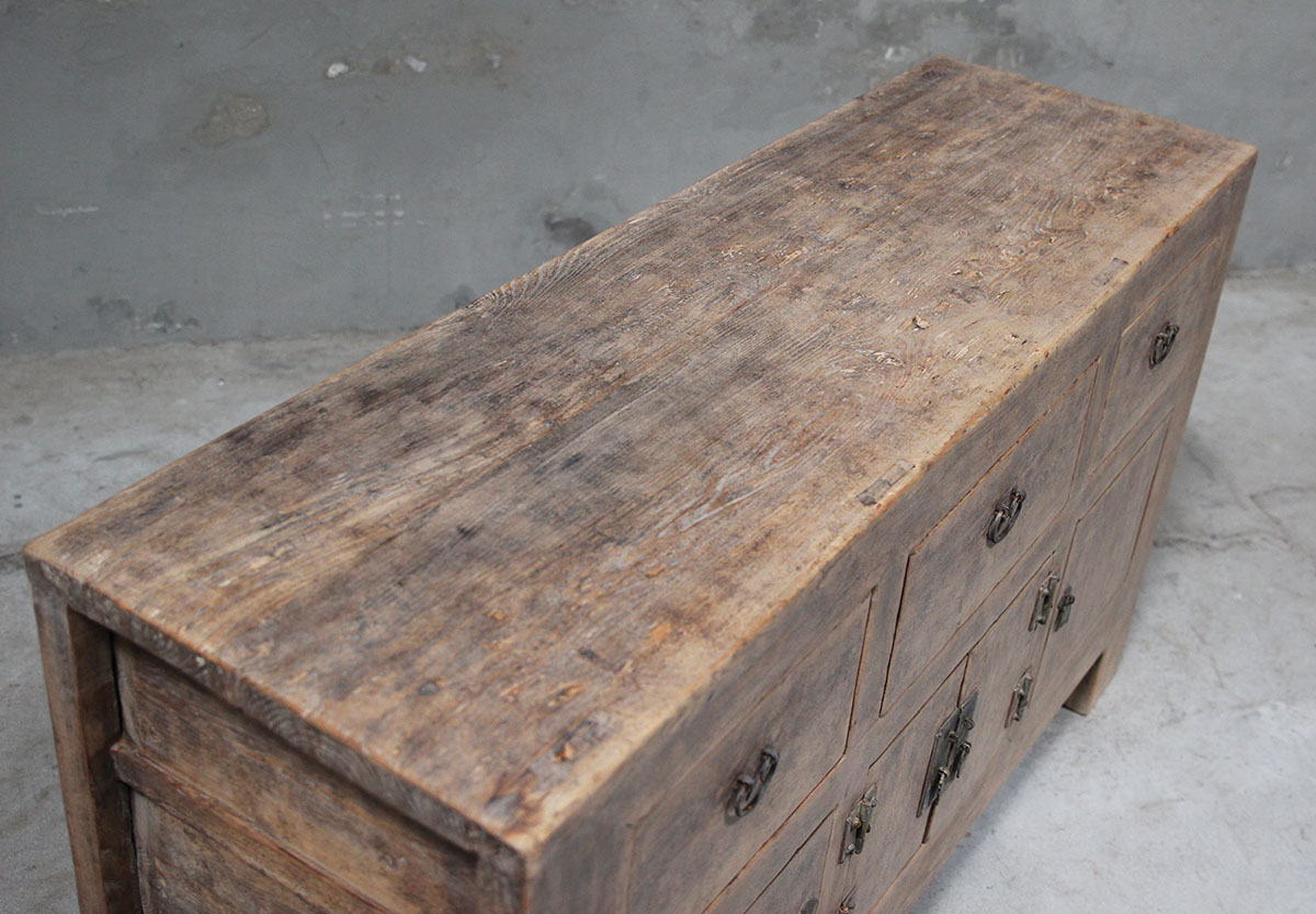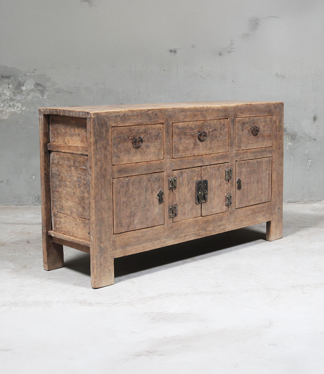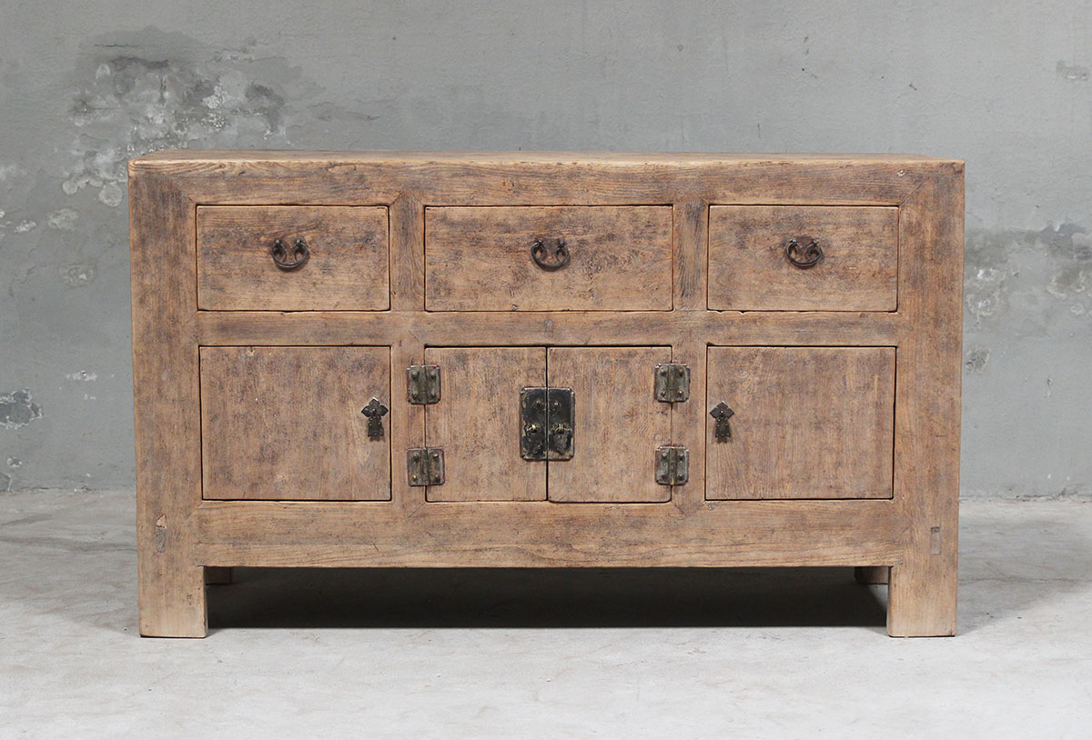 Small light-coloured elm sideboard with 3 drawers and 4 doors Ð 148cm