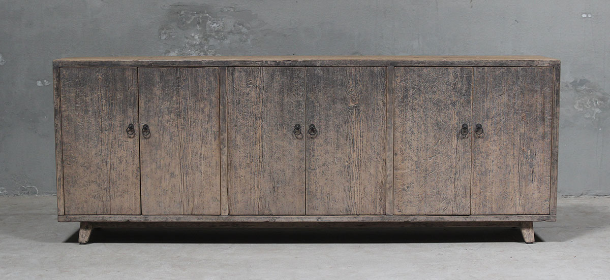 Weathered elm sideboard with 3 double doors Ð 220cm